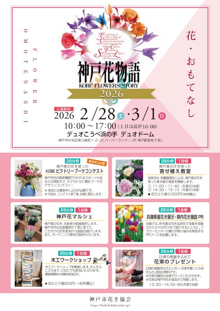 【イベント】 【2月28日(土)1日(日)】神戸花物語2026春開催のお知らせ!
