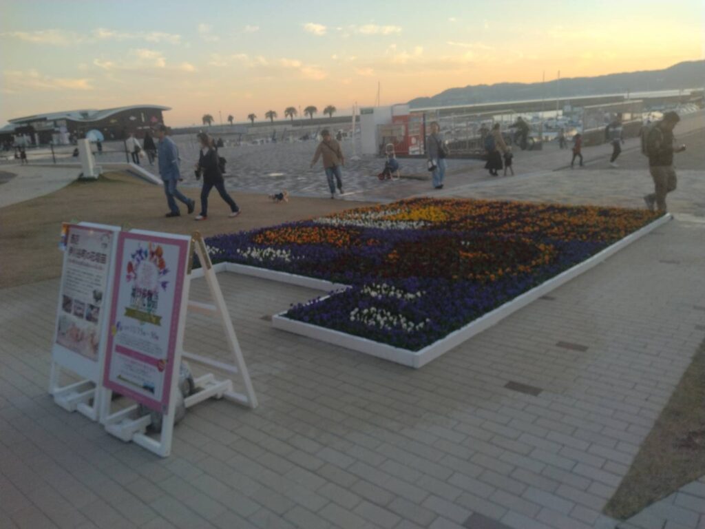 神戸市西区伊川谷町産のビオラ約1万鉢を使った花絵を、三井アウトレットパーク内、臨海休養広場付近に展示しおります!